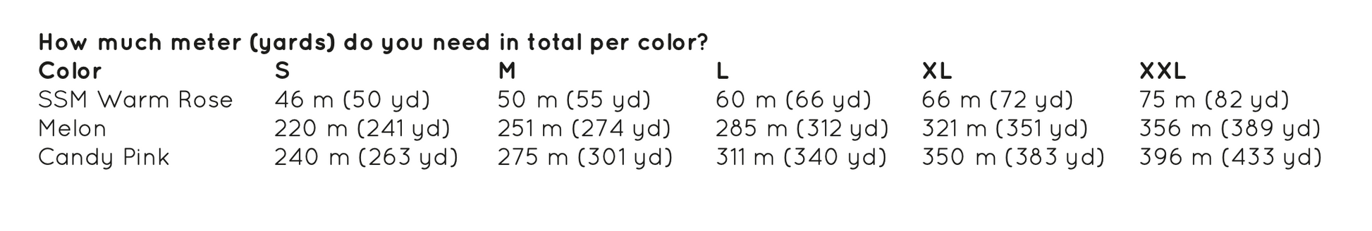 How much yarn do you need in total? based on the colors in the picture for size S, (M & L) (XL) (XXL):
