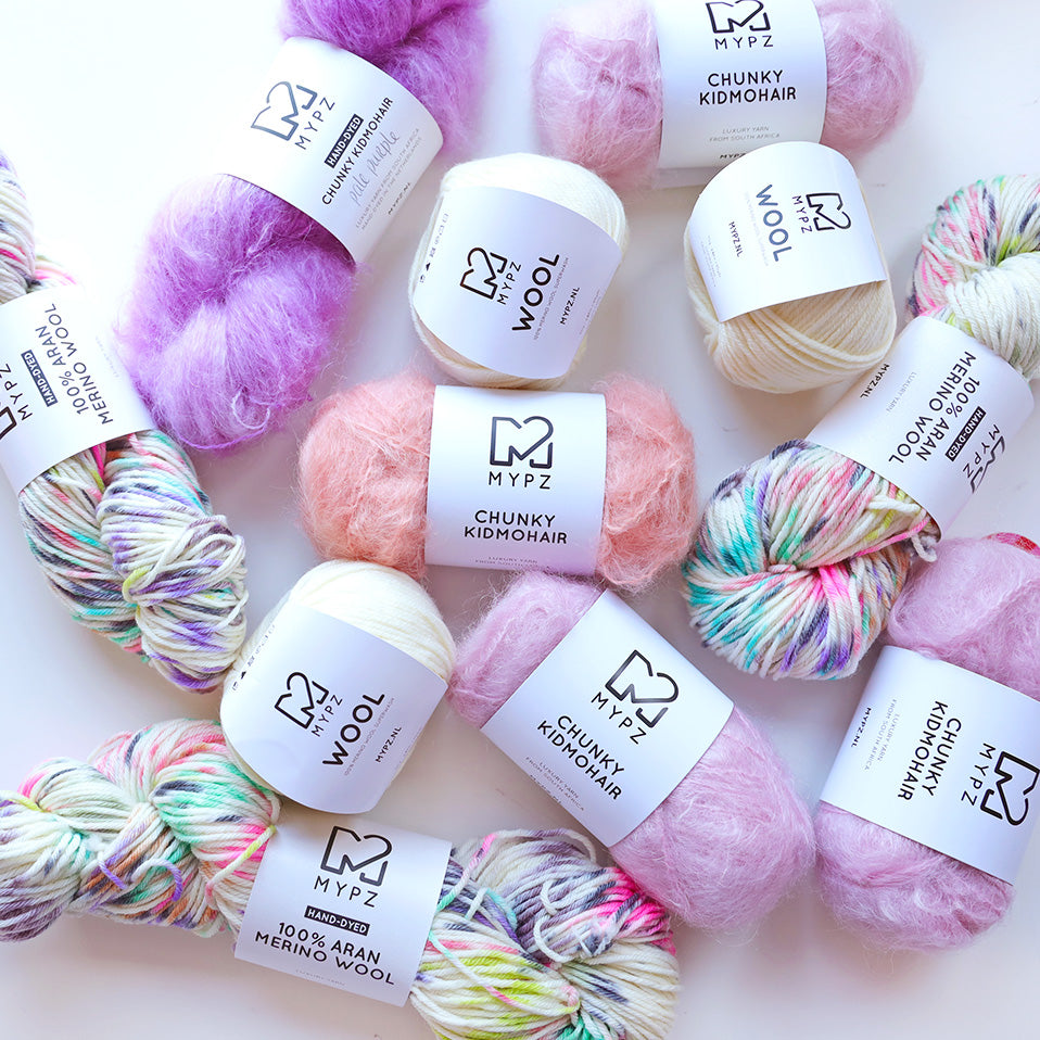 It’s very light, warm and comfortable. This kit contains MYPZ Chunky Kidmohair DK, a high quality fine brushed mohair that does not pill. These brushed yarns may shed a little but after a while this will subside.