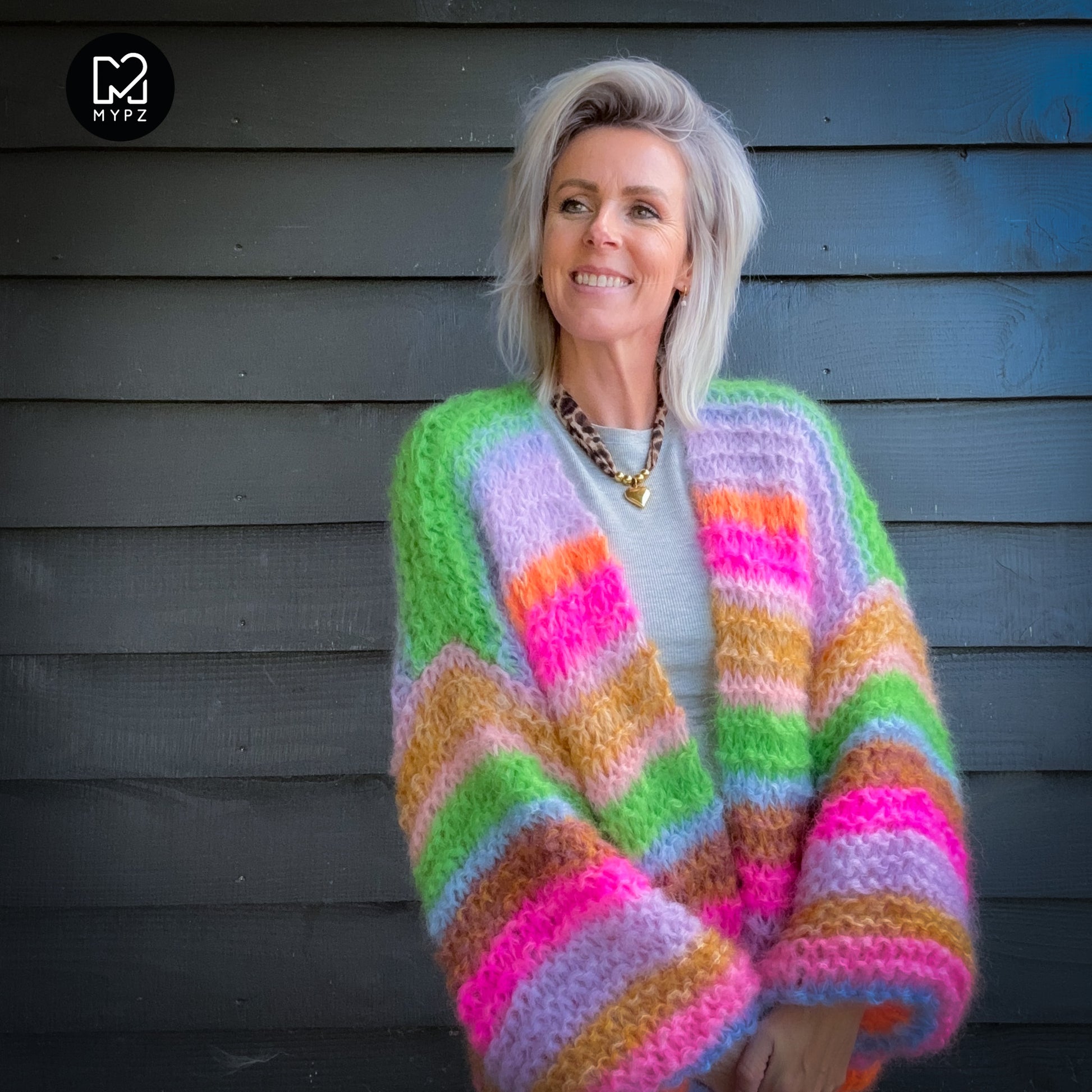 MYPZ Chunky Mohair Cardigan Rainbow Sorbet