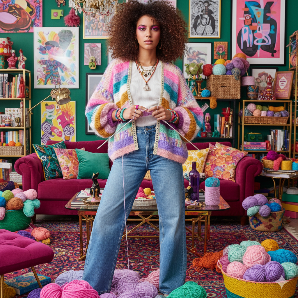 Crochet kit - Chunky Mohair cardigan Sunset Glow (ENG-NL-DE)