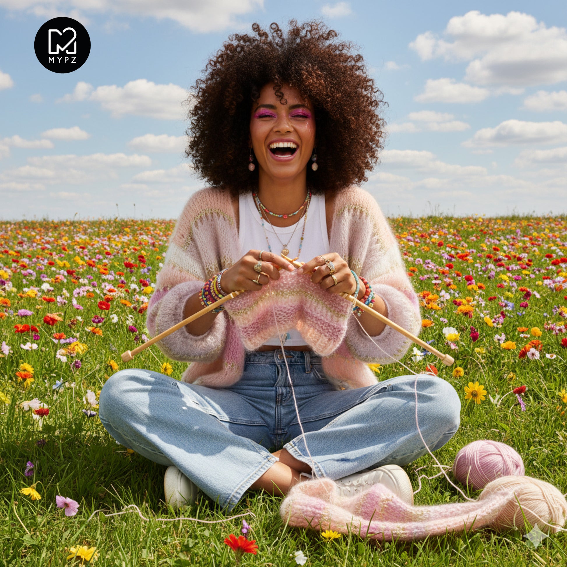 Ce modèle est tricoté dans plusieurs couleurs. Vous pouvez décider des couleurs et des fils selon vos goûts. Le modèle est tricoté avec 1 fils MYPZ Chunky kidmohair DK.